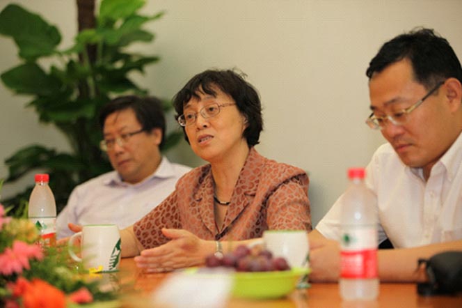 - 上海联和电影院线总经理徐小平女士在与世纪美映的座谈会上发言。