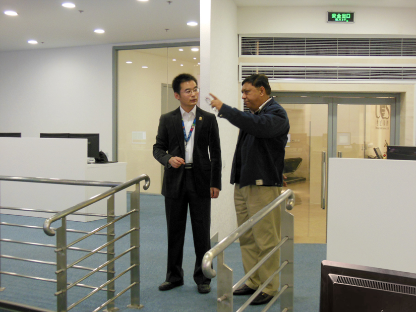 ■印度Interworld公司董事长Mr. MM Gupta先生与世纪美映首席技术官唐立国先生进行热烈交流。